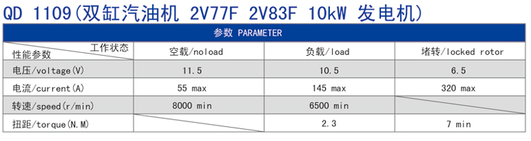產(chǎn)品名稱:QD 1109(雙缸汽油機 2V77F 10KW發(fā)電機)